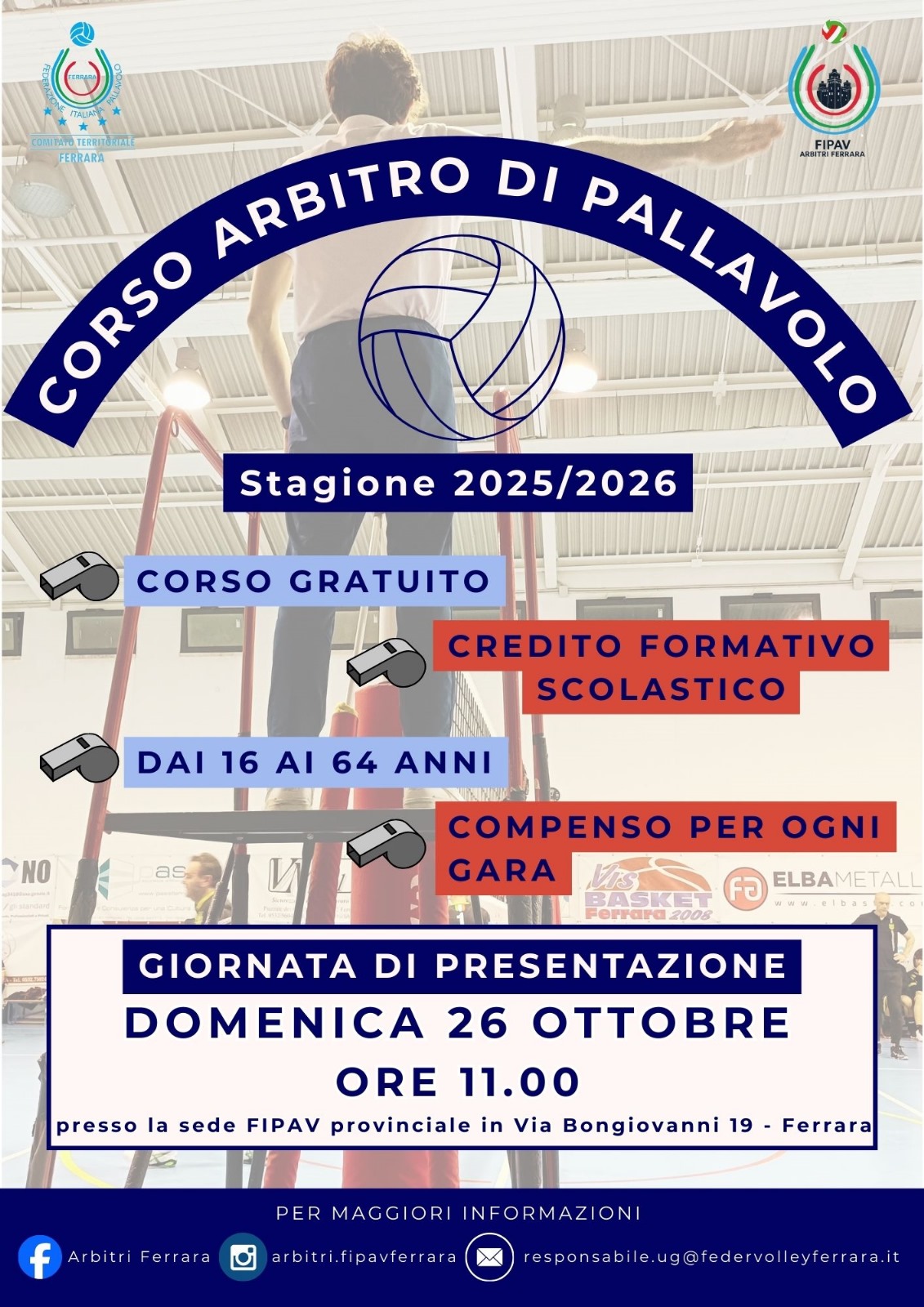 Al via il nuovo corso per diventare Arbitro di pallavolo. Domenica 26 ottobre, alle ore 11, presso la sede Fipav di Ferrara in via Bongiovanni 19, si terrà la presentazione...