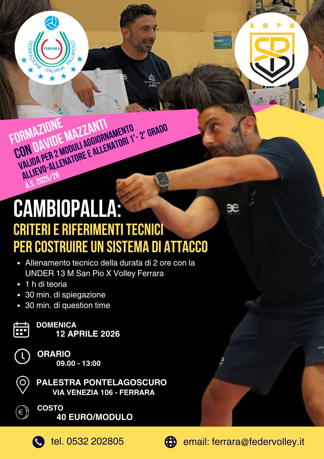 Il Comitato Fipav di Ferrara, in collaborazione con la Società San Pio X, organizza, domenica 10 maggio, un corso di aggiornamento per Allenatori di 1° e 2° Grado ed Allievi...